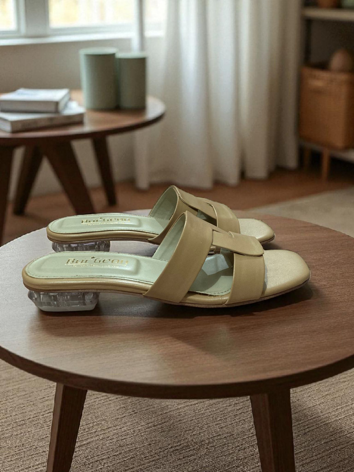 The Nouveau captivates through contrast. The upper is crafted from supremely soft, matte beige leather, offering a minimalist and sophisticated canvas that complements the skin tone for a seamlessly elegant look. This quiet luxury makes the dramatic transformation at the heel all the more stunning: the entire block heel is meticulously adorned with a mosaic of clear crystals, catching the light with every step and creating a mesmerizing spectacle of radiance from behind.