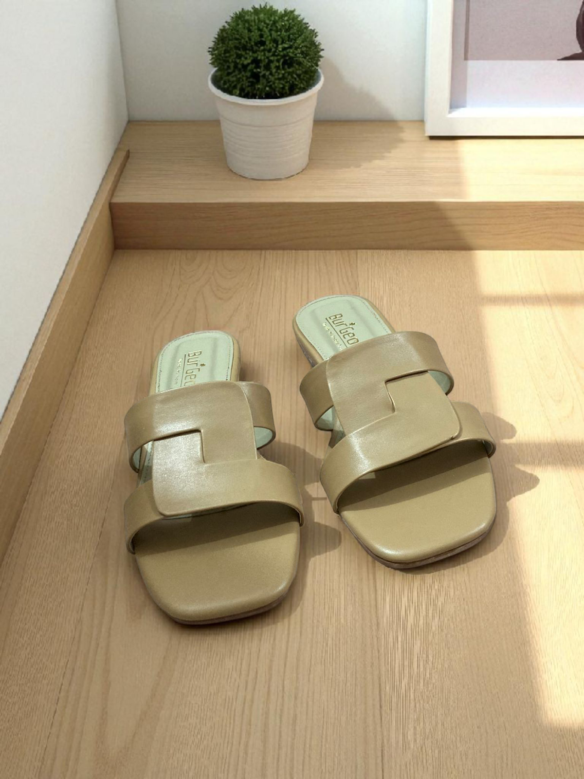 Upper: Supple matte beige leather strap for a clean, modern, and versatile look.